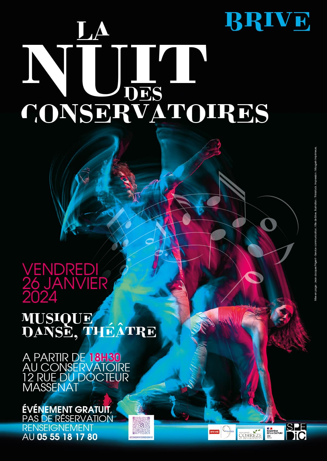 🎼 La Nuit des Conservatoires 🩰 Découvrir, de nuit, les disciplines artistiques enseignées le jour : musique, danse, théâtre 🗓️ Vendredi 26 Janvier 2024 à partir de 18h30 et jusqu’à 23h30 📍 au Conservatoire de Brive 😉 Entrée libre et gratuite