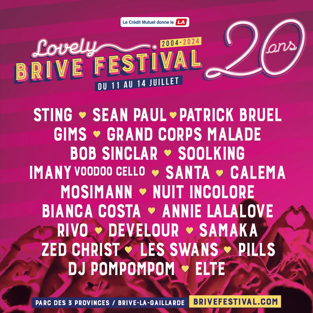 Festival de musique à taille humaine, accueillant tout aussi bien les artistes phares de la scène nationale et internationale que les jeunes pousses de la région. Au départ simple animation estivale, Brive Festival a su grandir en 17 ans pour devenir l’un des premiers festivals du Sud Ouest de la France. Sans perdre de vue sa vocation première il a su proposer une programmation variée aux festivaliers, les pieds dans le sable d’une plage recréée en centre-ville dans une ambiance festive et conviviale.